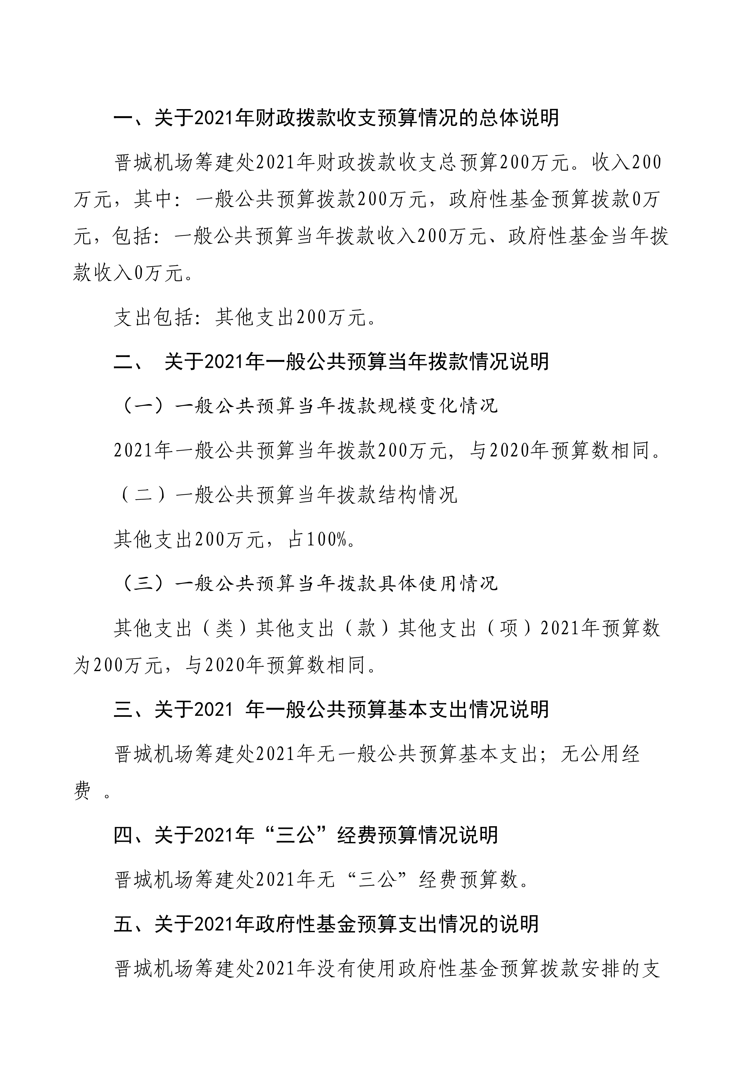 晉城機(jī)場籌建處2021年度預(yù)算公開