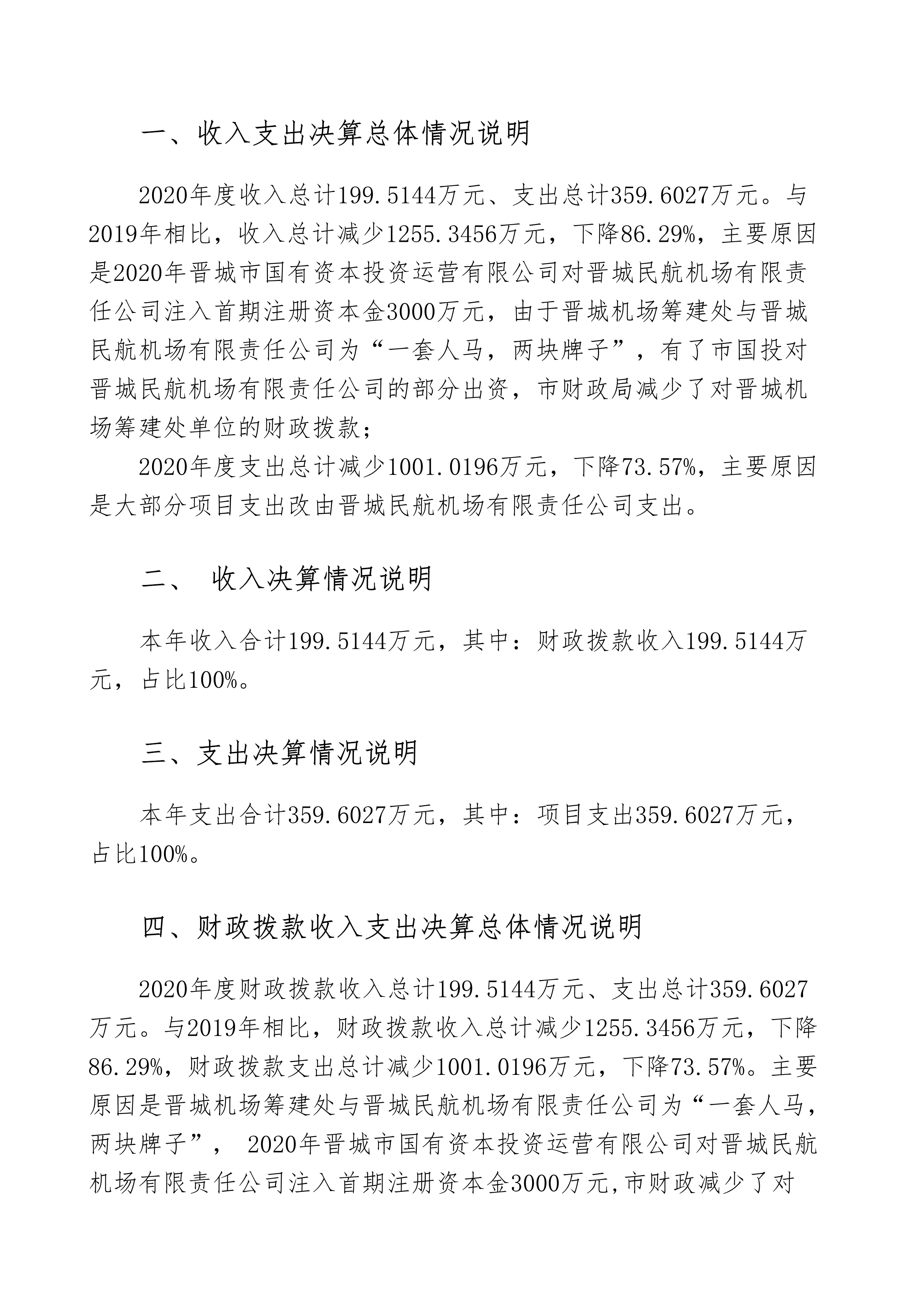 晉城機(jī)場(chǎng)籌建處2020年度決算公開