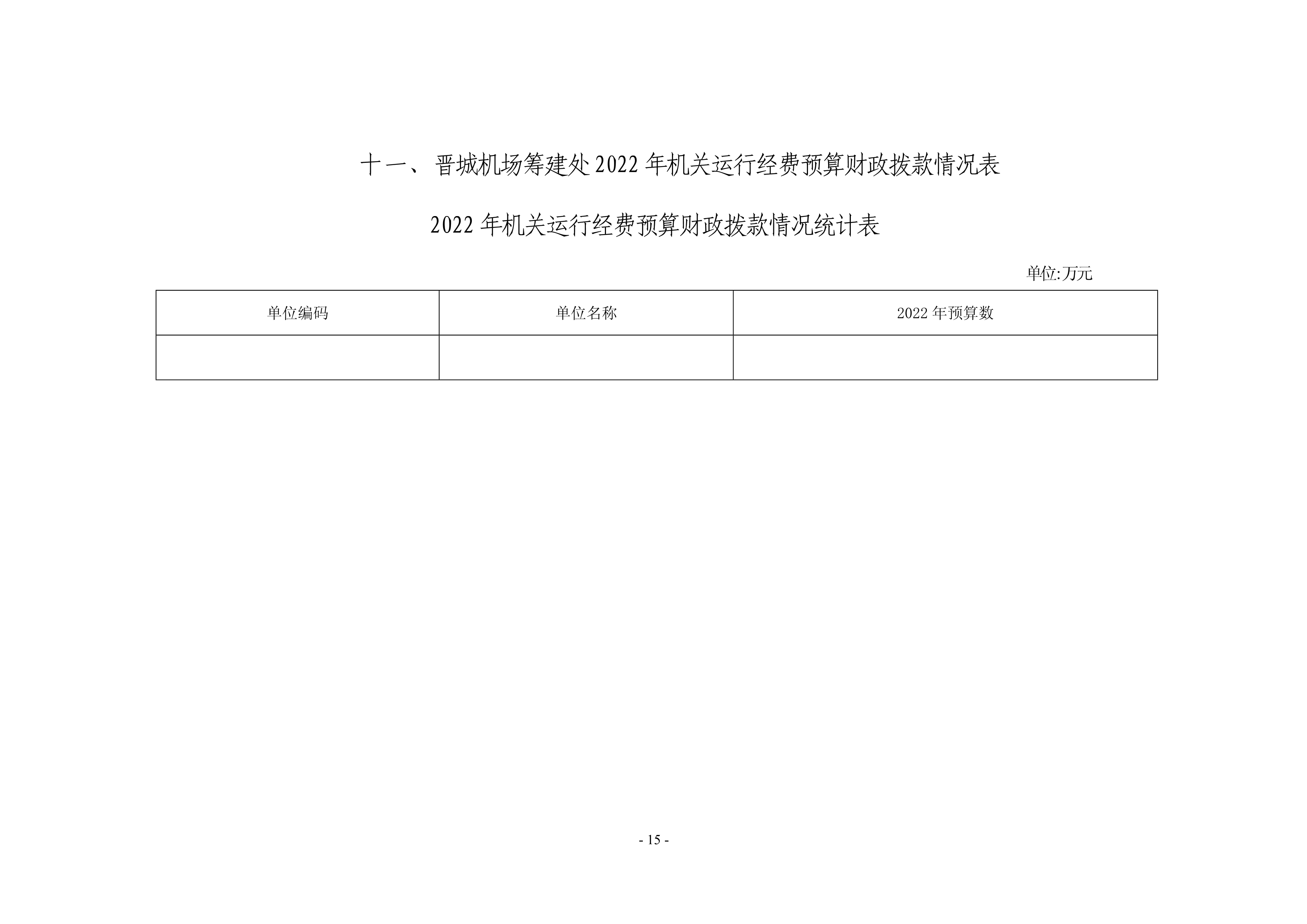 晉城機(jī)場籌建處2022年度預(yù)算公開