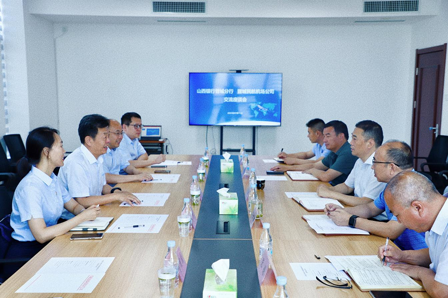 7月11日上午,山西銀行晉城分行行長(zhǎng)張建國(guó)一行與機(jī)場(chǎng)公司舉行交流座談會(huì)議,了解機(jī)場(chǎng)進(jìn)展和投資建設(shè)模式,雙方就銀企合作等方面進(jìn)行了深入交流。