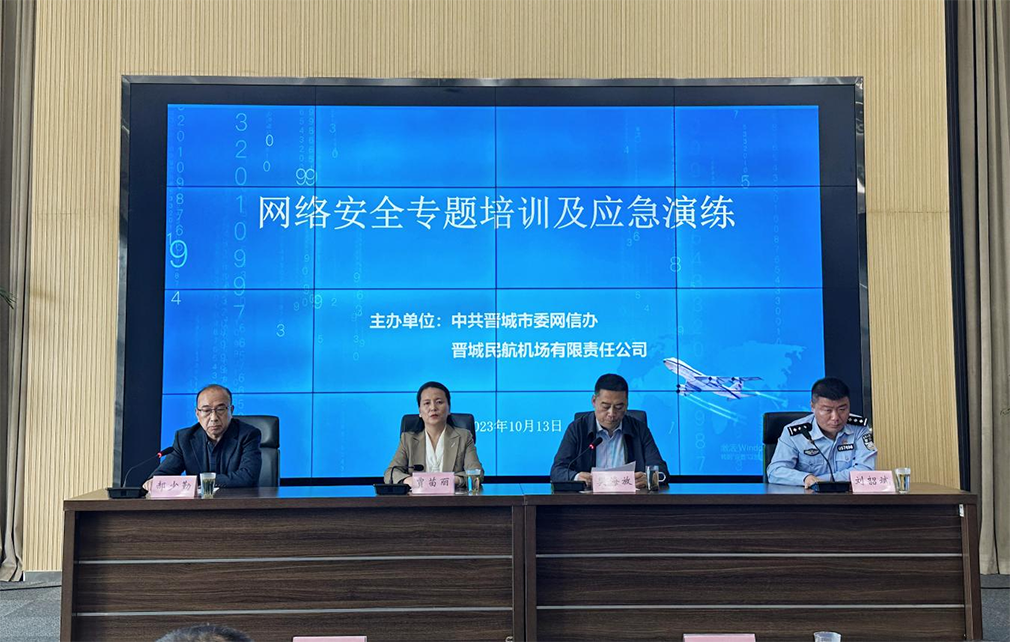 市委宣傳部副部長(zhǎng)、網(wǎng)信辦主任賈苗麗對(duì)本次專題培訓(xùn)和應(yīng)急演練高度肯定,表示今后將繼續(xù)關(guān)注機(jī)場(chǎng)公司網(wǎng)絡(luò)安全工作,堅(jiān)持“萬(wàn)無(wú)一失,一失萬(wàn)無(wú)”的底線思維,持續(xù)加強(qiáng)機(jī)場(chǎng)公司網(wǎng)絡(luò)安全防線指導(dǎo)力量,確保網(wǎng)絡(luò)信息系統(tǒng)安全平穩(wěn)運(yùn)行,助力晉城機(jī)場(chǎng)早建成、早通航。