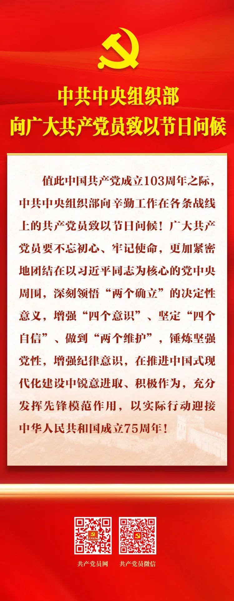中共中央組織部向廣大共產(chǎn)黨員致以節(jié)日問候