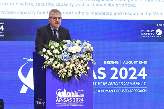 宋志勇圍繞“生命至上、安全第一,以人為本構(gòu)建更高水平民航安全”作了主旨發(fā)言。他表示,一直以來,中國民航始終致力于積極為全球民航安全發(fā)展貢獻(xiàn)力量,治理體系和治理能力的現(xiàn)代化水平不斷提高。他指出,只有牢固樹立安全發(fā)展理念、不斷強(qiáng)化人的安全意識(shí),加強(qiáng)專業(yè)隊(duì)伍建設(shè)、不斷強(qiáng)化人的資質(zhì)能力,提升依法治理水平、不斷規(guī)范人的安全行為,持續(xù)推進(jìn)科技興安、不斷提高人的工作效能,才能更好塑造民航安全;只有加強(qiáng)國際交流合作、分享安全經(jīng)驗(yàn)和成果,才能更好塑造共同安全。他強(qiáng)調(diào),全球民航安全發(fā)展仍然面臨諸多風(fēng)險(xiǎn)挑戰(zhàn),希望亞太地區(qū)各國民航塑造更為開放兼容、積極向上的安全文化,加強(qiáng)人才培養(yǎng)和科技支撐,推動(dòng)國際和地區(qū)間的合作交流,共同推動(dòng)亞太地區(qū)乃至全球民航業(yè)實(shí)現(xiàn)高水平安全和高質(zhì)量發(fā)展。