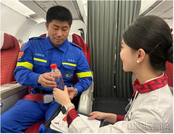 “在危難時刻你們無畏逆行,用專業(yè)與擔(dān)當(dāng)守護(hù)生命,用汗水與信念點(diǎn)亮希望”當(dāng)航班進(jìn)入平飛階段,乘務(wù)組通過機(jī)上廣播向藍(lán)天救援隊員們表達(dá)崇高敬意,廣播未畢,客艙內(nèi)就已響起熱烈掌聲,旅客們紛紛為這群“逆行英雄”點(diǎn)贊鼓掌。