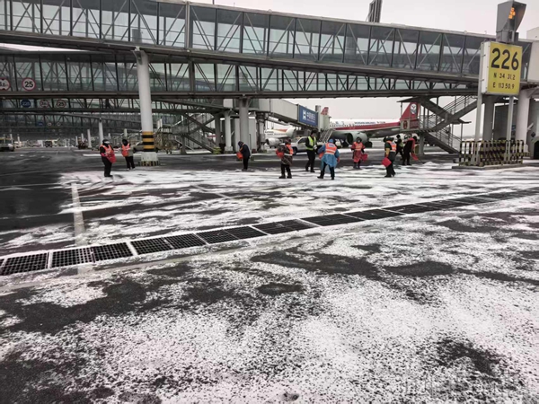降雪預(yù)警發(fā)布后,基地根據(jù)安全服務(wù)保障預(yù)案,梳理值機(jī)、登機(jī)口、行李運(yùn)輸、機(jī)坪保障等高風(fēng)險環(huán)節(jié)的服務(wù)標(biāo)準(zhǔn)。明確防滑防摔、行李防護(hù)、應(yīng)急處置與管控要求。深入航站樓各服務(wù)觸點(diǎn),開展拉網(wǎng)式監(jiān)督檢查:重點(diǎn)核查防滑墊鋪設(shè)、警示標(biāo)識設(shè)置情況以及旅客等候區(qū)保暖設(shè)施運(yùn)行情況,抽查航延信息播報頻次與準(zhǔn)確性,督導(dǎo)行李分揀環(huán)節(jié)的防雪防潮防護(hù)措施,機(jī)坪作業(yè)人員防寒防護(hù)裝備佩戴與車輛慢行規(guī)范,確保每一個服務(wù)細(xì)節(jié)都落實(shí)到位,安全管控?zé)o死角。