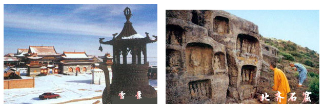 石佛嶺:在白馬寺山后約1公里多的山崖上,有一處摩巖造像群,古稱石佛嶺。據(jù)史料記載,原有造像500余尊。傳說一和尚,為了搞清佛像的數(shù)量,數(shù)了十多遍,每次都不一樣,不得已,他用了三天的時(shí)間將每尊像都貼上編號(hào),才總算得以數(shù)清。由于各種原因,石佛嶺造像破壞較大,現(xiàn)僅存30余龕,90余尊,以北齊造像為多,有少量的唐寧元造像,還有幾尊似為明、清遺物,十分珍貴。