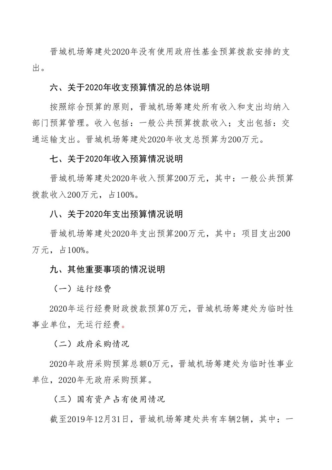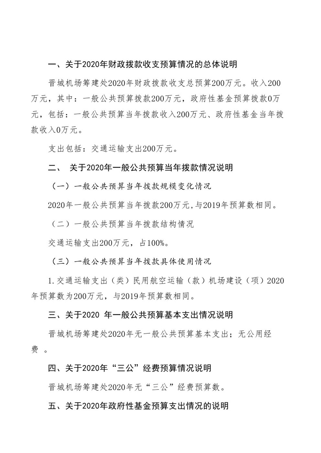 晉城機(jī)場(chǎng)籌建處2020年度預(yù)算公開