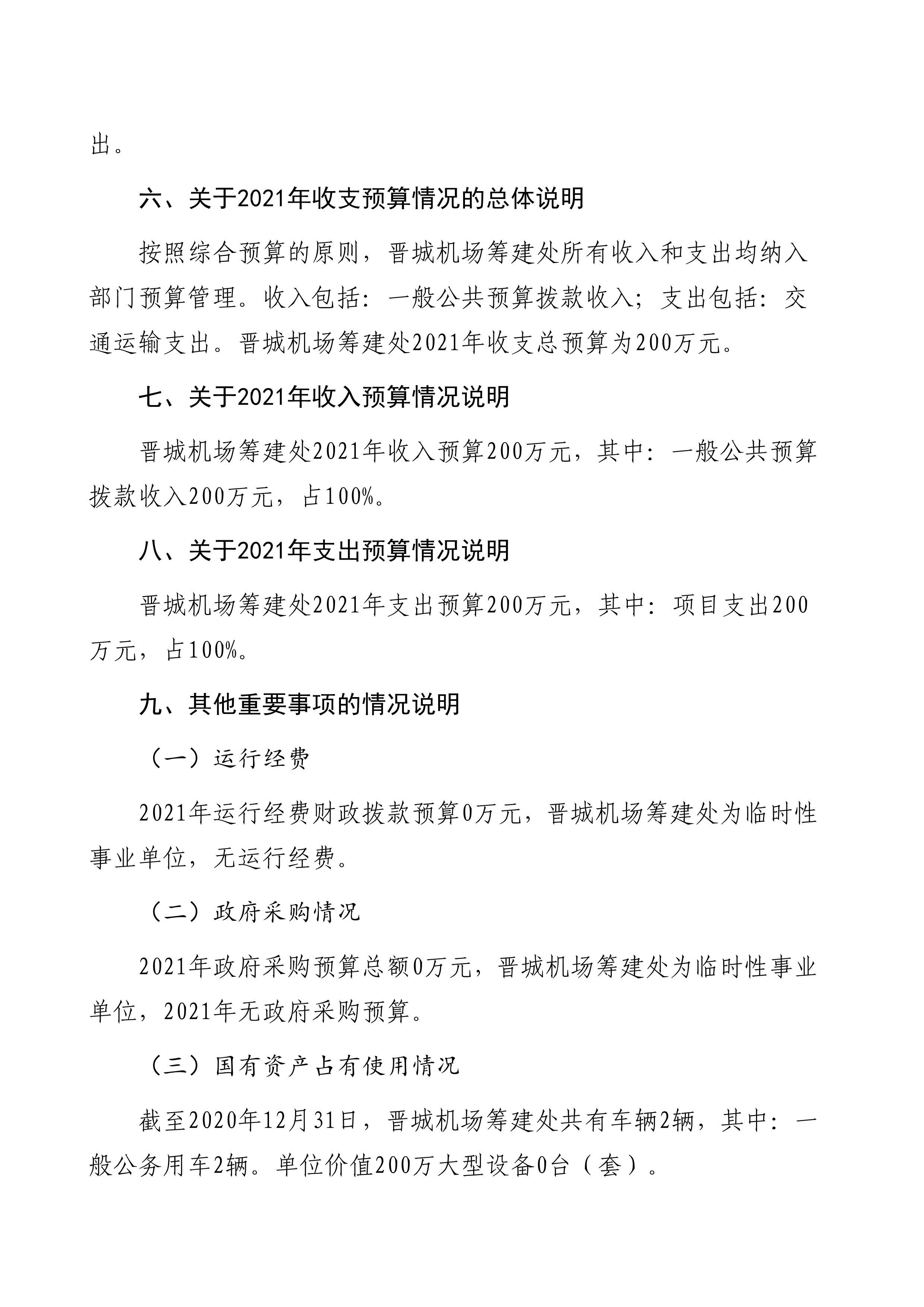 晉城機(jī)場籌建處2021年度預(yù)算公開