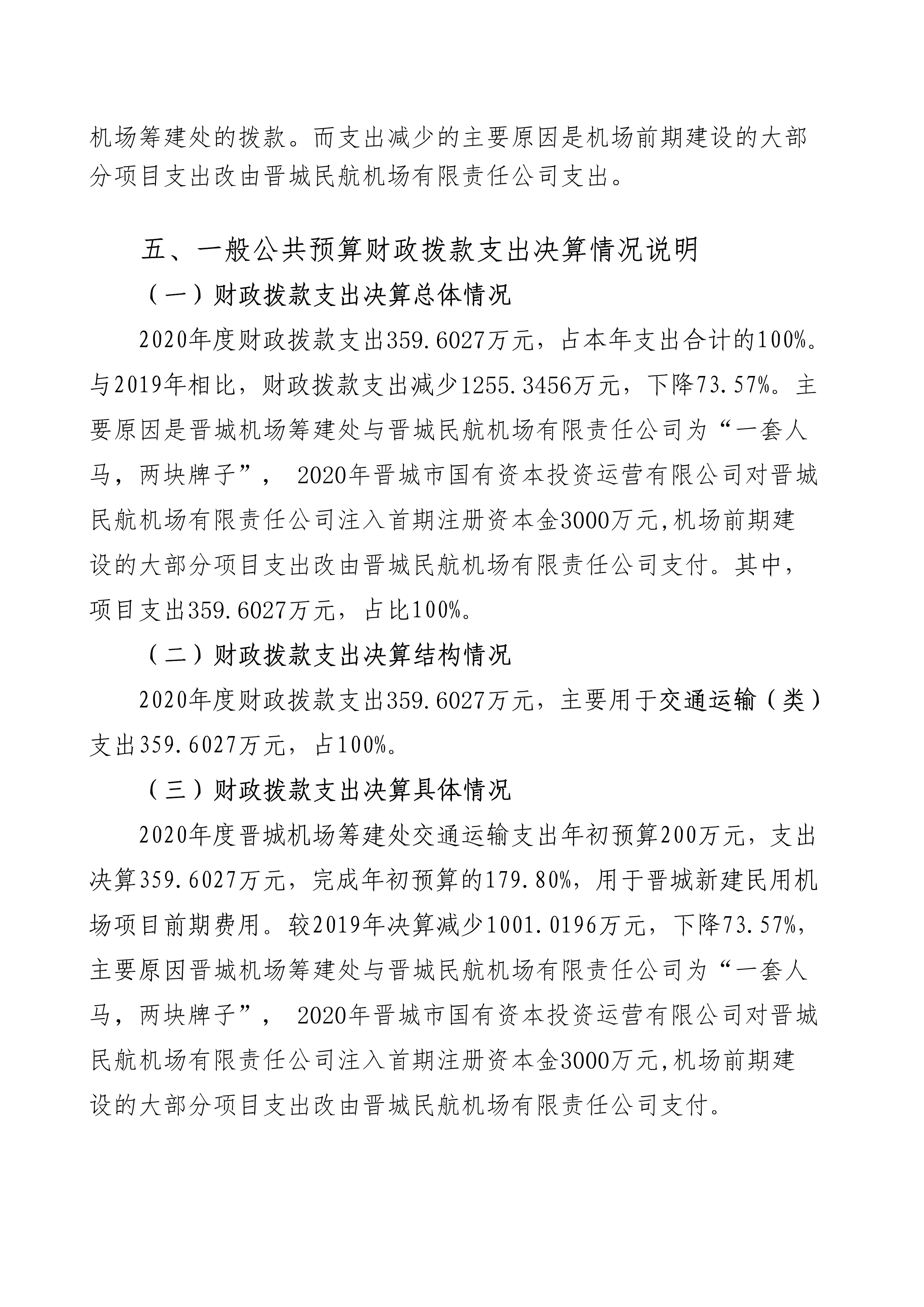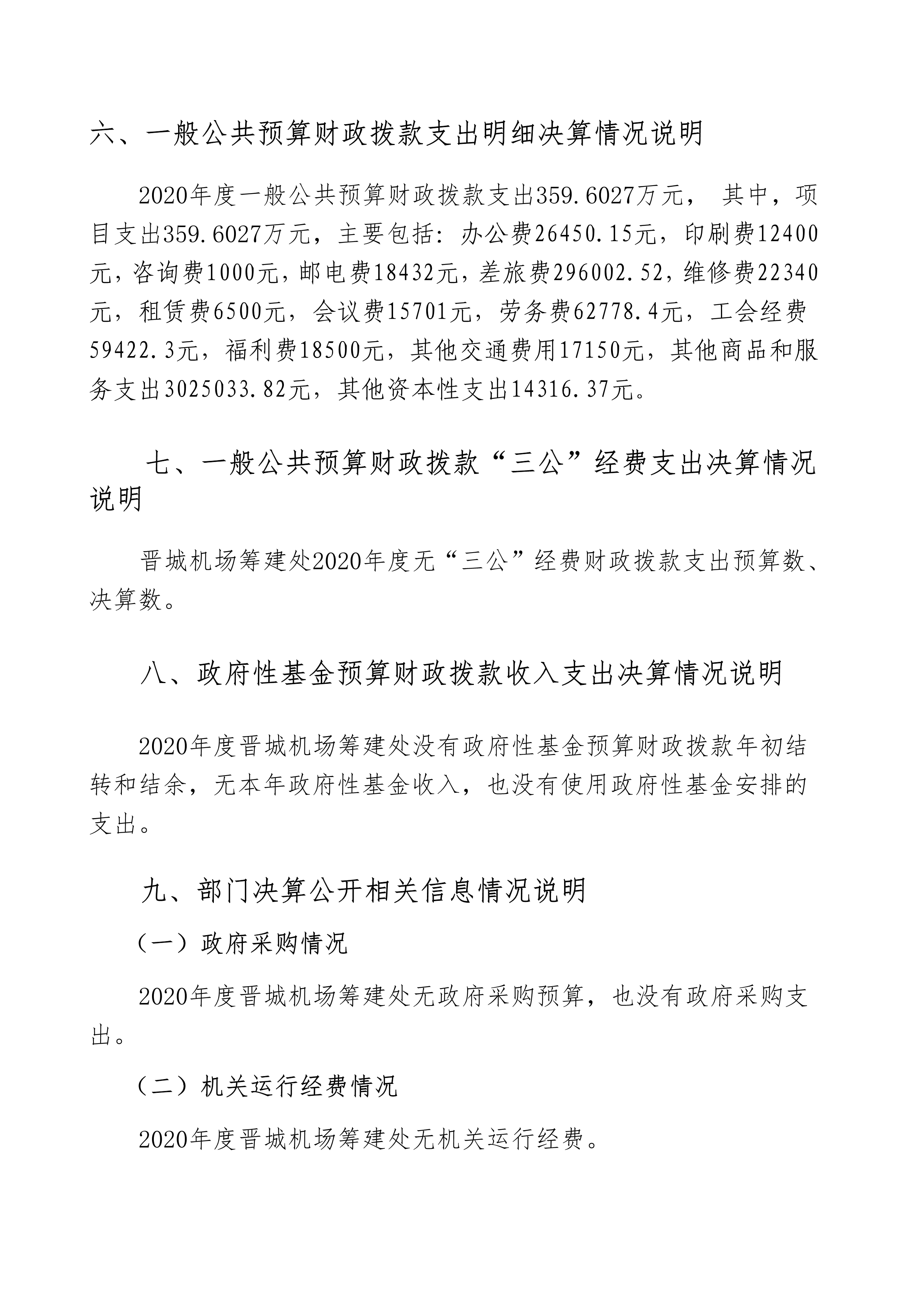 晉城機(jī)場(chǎng)籌建處2020年度決算公開