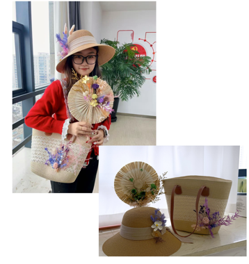 伴隨著悠揚(yáng)的輕音樂旋律,大家聚精會(huì)神地聆聽老師的講解,同時(shí)巧手匠心,將所學(xué)技巧融入實(shí)踐,在“帽美如花”、“包你幸!薄ⅰ皶x扇晉美”三個(gè)環(huán)節(jié),親手裝飾出專屬自己的夏日限定飾品。通過草編與花藝的巧妙結(jié)合,這些作品在形態(tài)、色彩與質(zhì)地上展現(xiàn)出豐富多變的優(yōu)雅風(fēng)姿。在芬芳馥郁的花香環(huán)繞中,大家不僅感受到了大自然的韻味,更領(lǐng)悟到了生活的藝術(shù)與真諦。作品完成后,大家興奮地相互展示,彼此欣賞,紛紛舉起自己的得意之作合影留念,定格下了這一美好而難忘的瞬間。