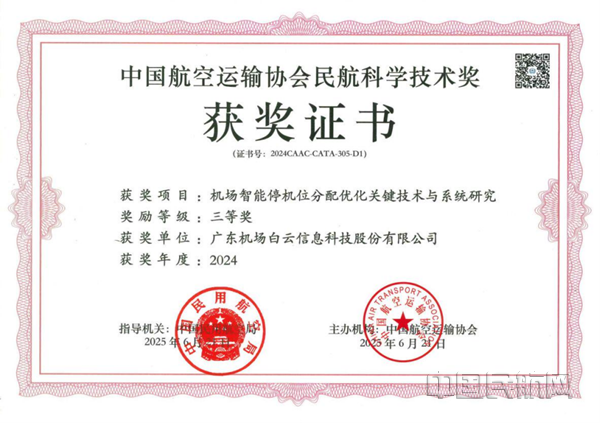 中國民航網(wǎng) 通訊員李慶泰、項嘉懿 報道:近日,廣東機場白云信息科技股份有限公司(以下簡稱“白云信科”)憑借“機場智能停機位分配優(yōu)化關(guān)鍵技術(shù)與系統(tǒng)研究”項目,榮獲2024年度中國航空運輸協(xié)會民航科學(xué)技術(shù)獎三等獎。這一獎項不僅是對白云信科技術(shù)創(chuàng)新能力的認可,更標(biāo)志著白云機場運行管理智能化水平邁上新臺階。